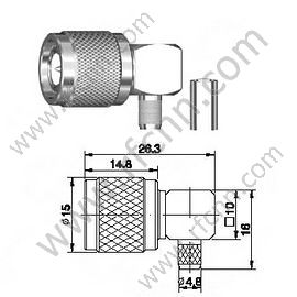| Descrição | Ângulo direito masculino TNC para o conector RG58 RF |